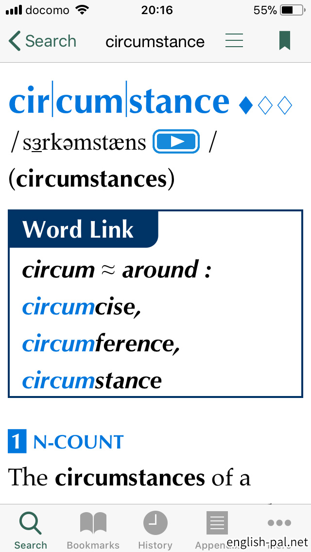 Oxford Learner's dictionariesでcircumstanceを調べてみますと、以下のように書かれています。