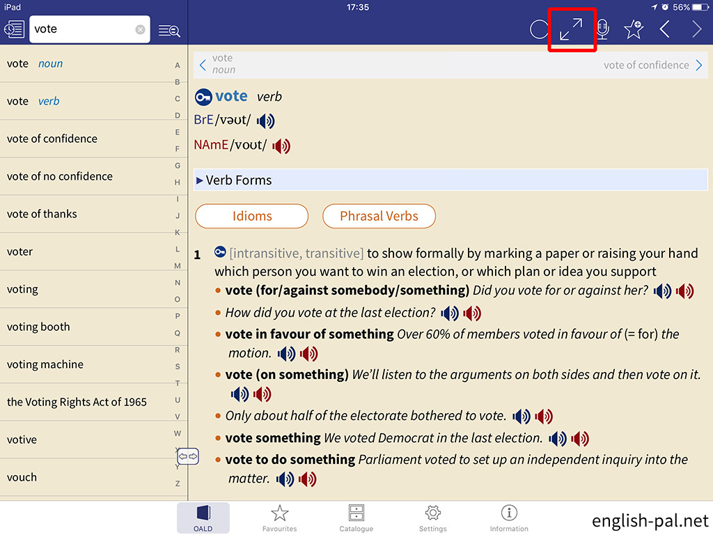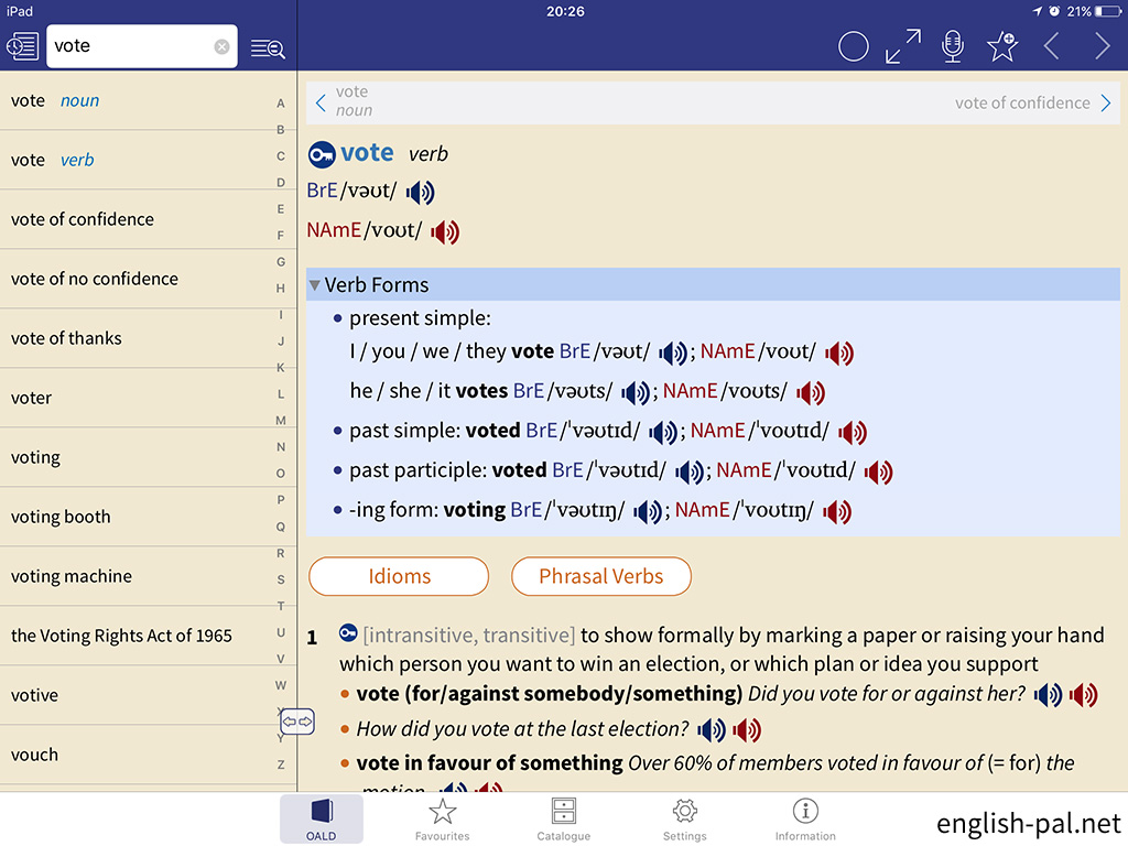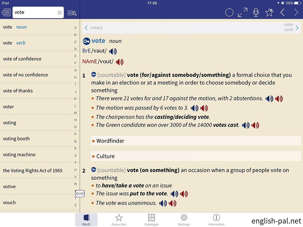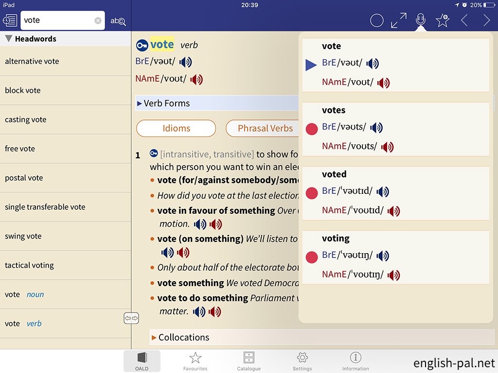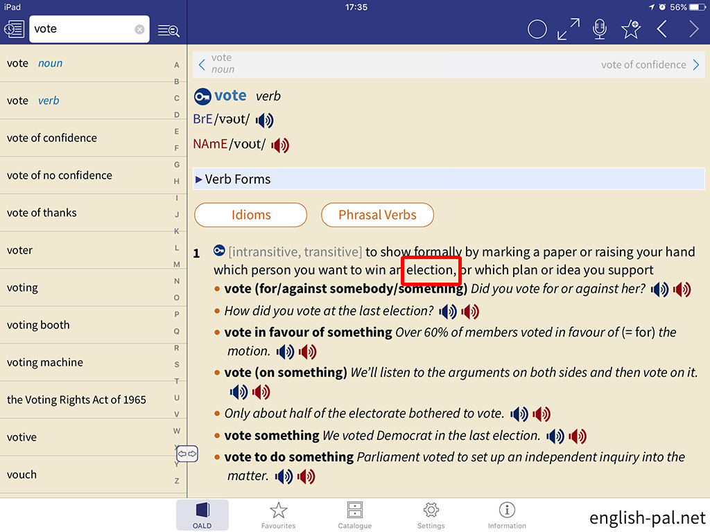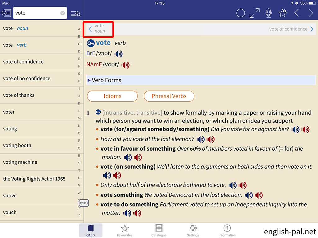 画面では、「vote verb」の前の「vote noun」に切り替えています。