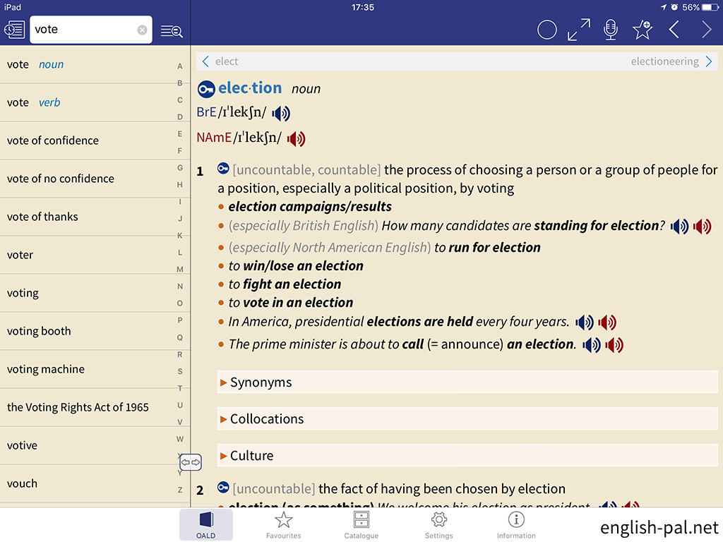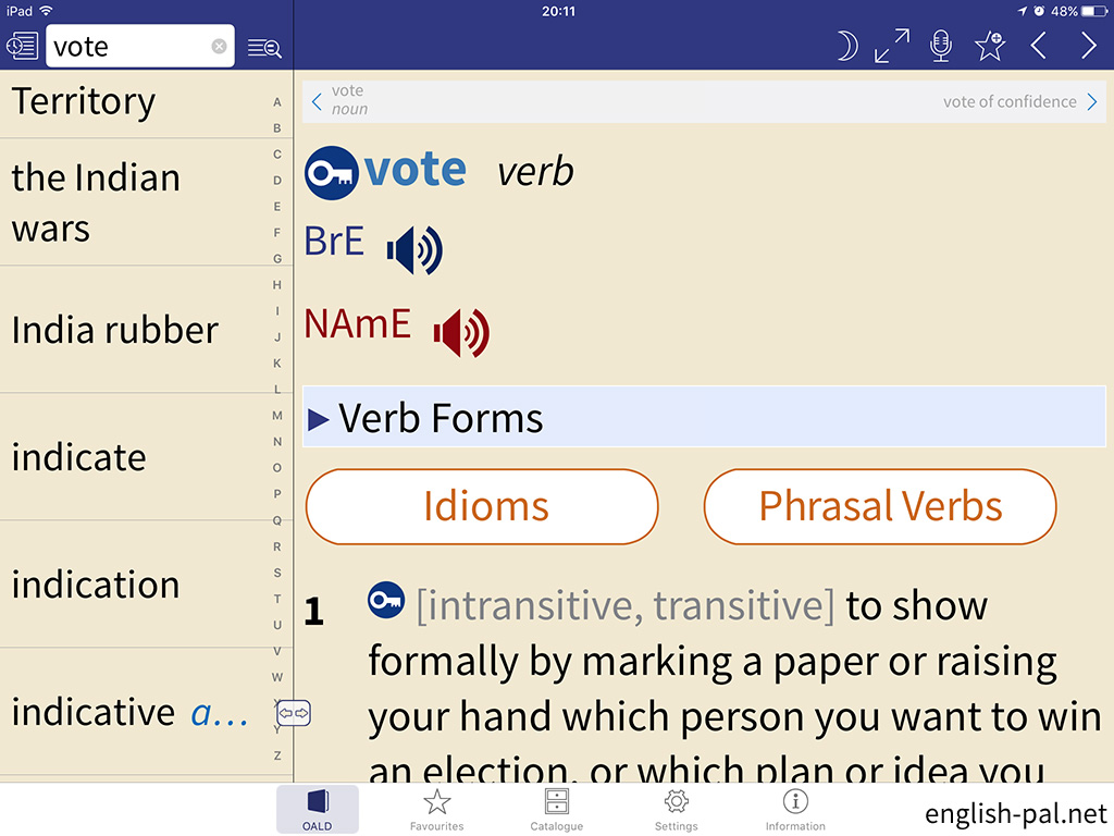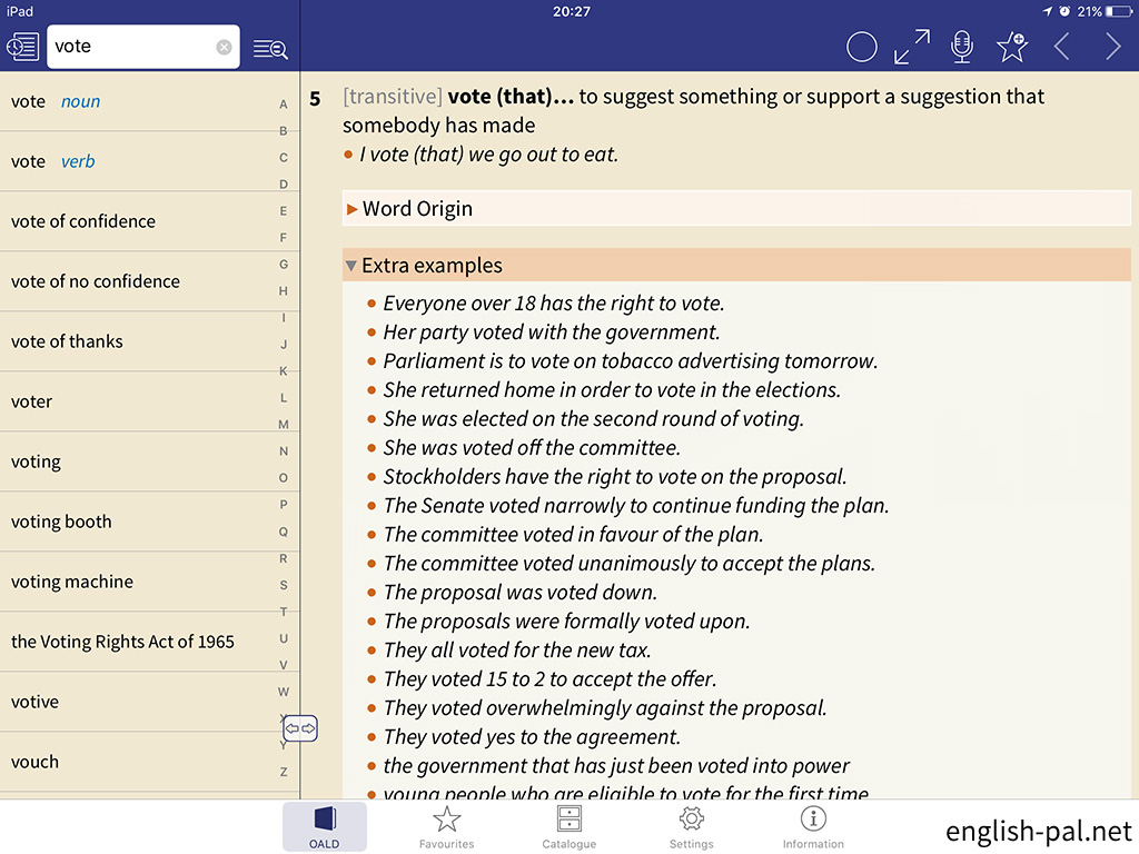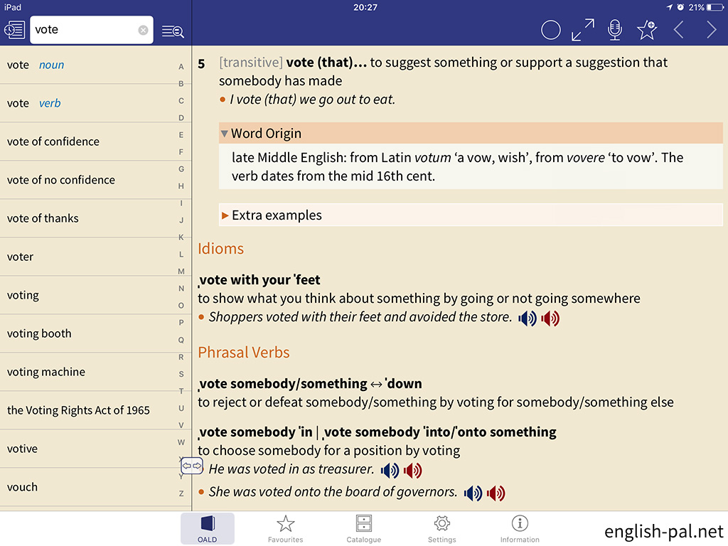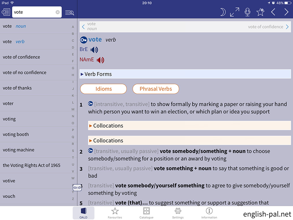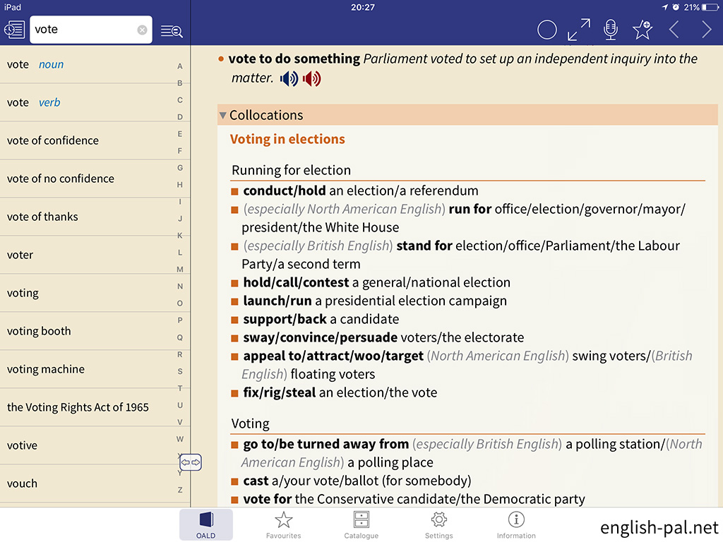 画面では、「vote verb」の前の「vote noun」に切り替えています。