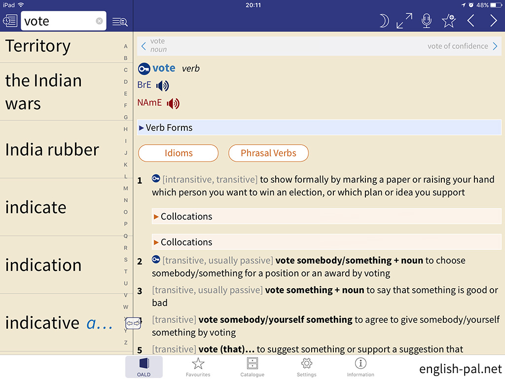 英英辞典でも世界中で人気のあるOxford Advanced Learner's Dictionaryは私も最も愛用している英英辞典のひとつです。そのアプリがiPhoneとiPadに対応しているので、調べ物がはかどります。
