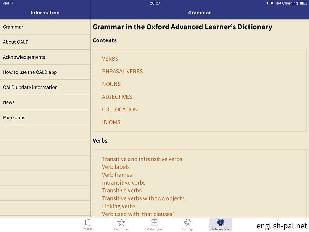 「Information」から「Grammar」を選ぶと、文法の解説を読むことが出来ます。