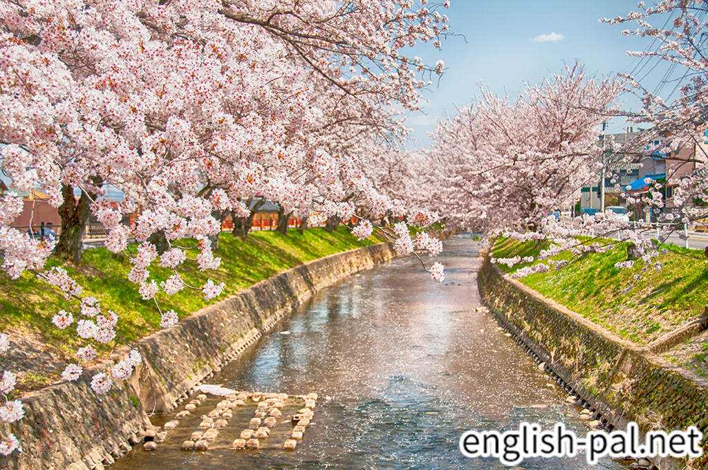 About 1,400 beautiful cherry blossom trees adorn the banks on both sides for approximately 7.6 km.